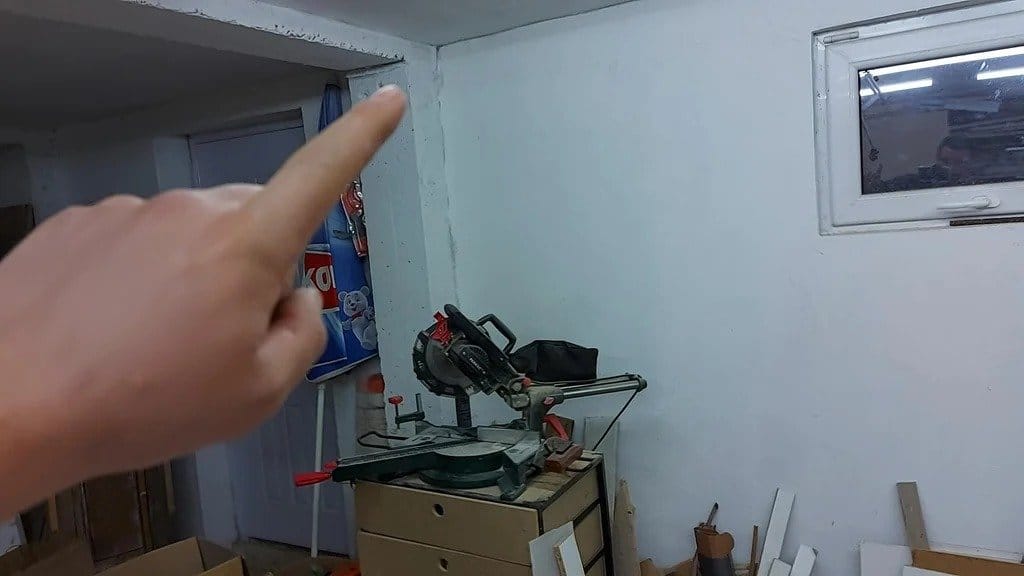 Он планирует прикрутить к воздуходувки крючки и повесить ее в углу над циркулярной пилой.