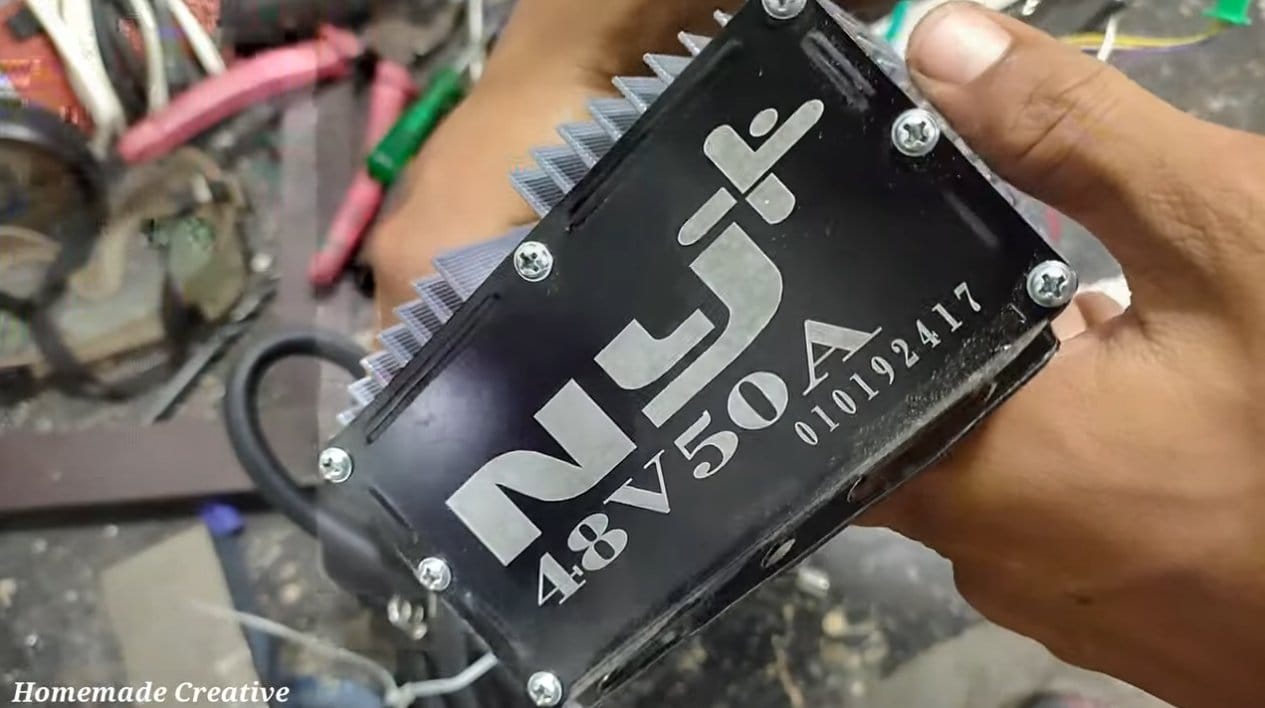 Красим самоделку и далее все можно собирать. Контроллер оборотов двигателя автор поставил также на заднюю вилку. Подключаем тормозную систему и тщательно ее проверяем, от этого может зависеть жизнь наездника.